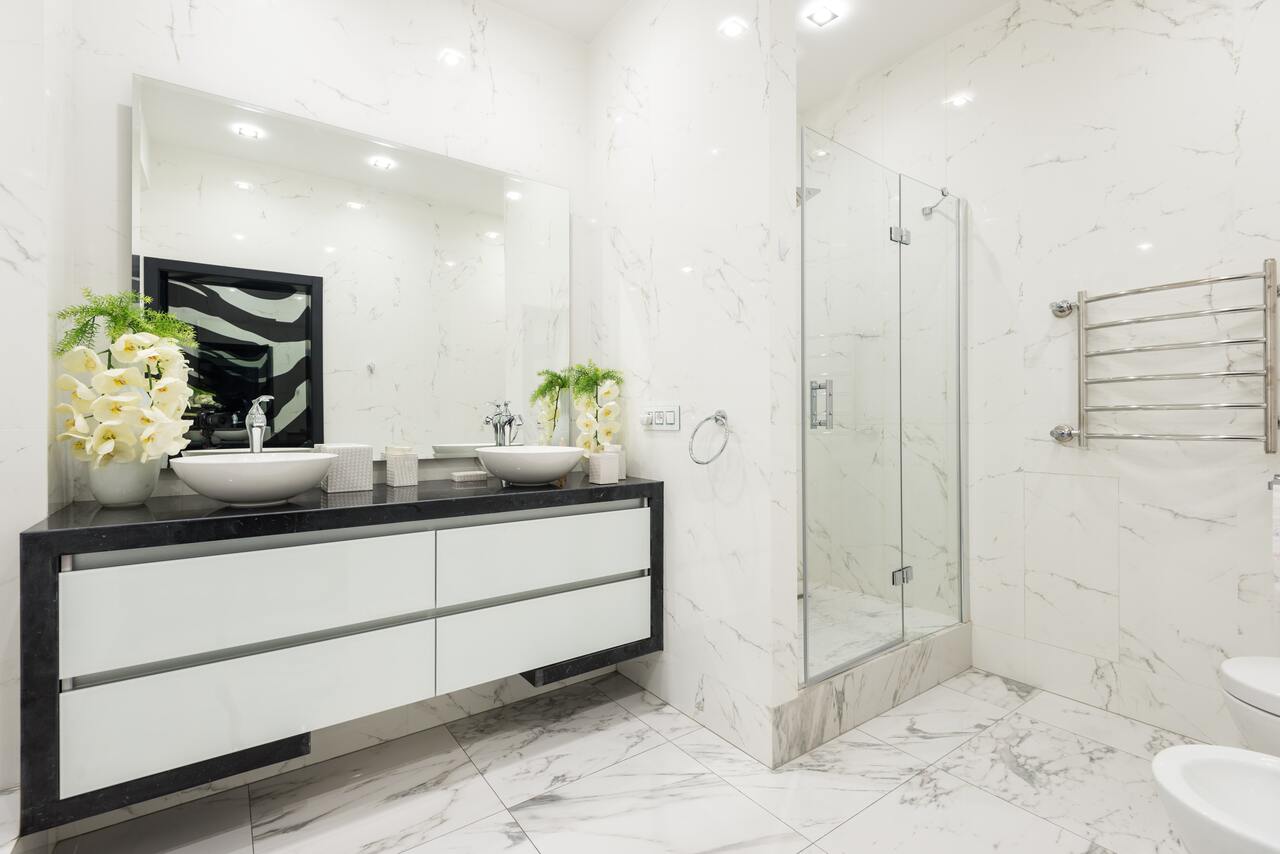 There is never enough storage space in a bathroom, no matter how big it is. Adding extra storage can be as simple as rolling in a glass-door cabinet if you’re renting or not quite ready to commit to a renovation.