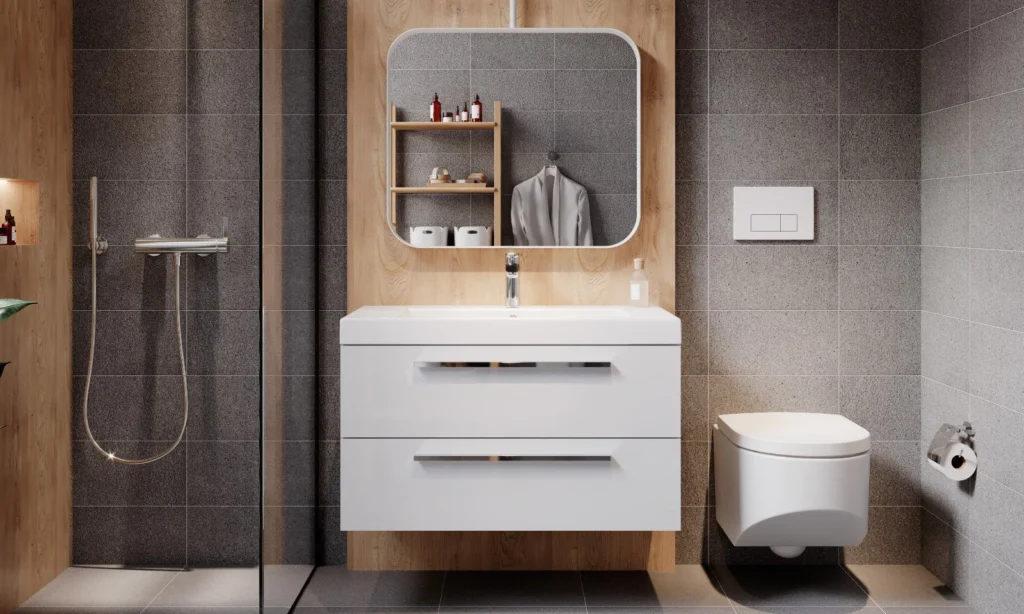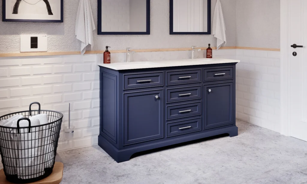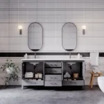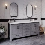 72″ Adalia Double Sink Cabinet, Sivec Marble Countertop, Gray