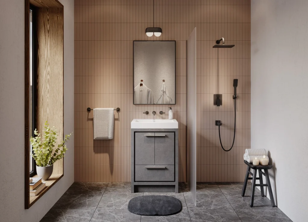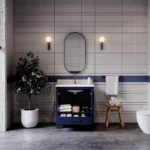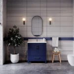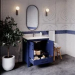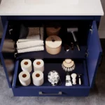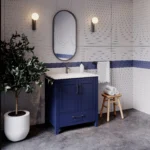 30″ Adalia Single Sink Cabinet, Sivec Marble Countertop, Navy Blue