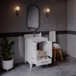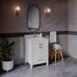 24″ Adalia Single Sink Cabinet, Sivec Marble Countertop, White