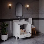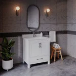 30″ Adalia Single Sink Cabinet, Sivec Marble Countertop, White