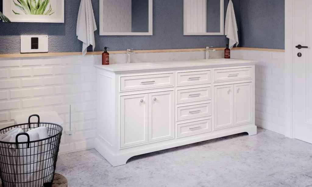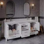 72″ Adalia Double Sink Cabinet, Sivec Marble Countertop, White