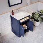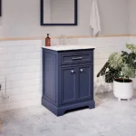24″ Talia Single Sink Cabinet, Sivec Marble Countertop, Single Porcelain Sink, Navy Blue