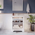 Talia Vanity makes an impression with its wooden drawer, frame construction, modern accessories, and fashionable design. This feature provides a unique ambience in your bathroom by integrating old and new styles.