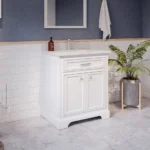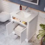 30″ Talia Single Sink Cabinet, Sivec Marble Countertop, Single Porcelain Sink, White