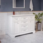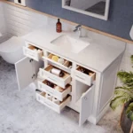 48″ Talia Single Sink Cabinet, Sivec Marble Countertop, Single Porcelain Sink, White