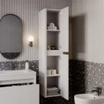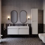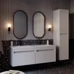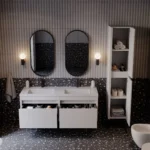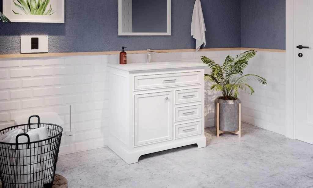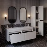 60″ Taurus Double Sink Cabinet, Sivec Marble Countertop, White