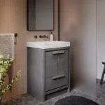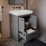 With a beautiful cement grey finish over a high-quality particleboard construction, this vanity compliments any style, allowing for the perfect balance between color and design. Its sink/countertop is made from a durable acrylic material that is less likely to break than traditional ceramic or porcelain. It is also easier to clean and requires little maintenance.