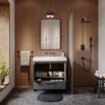 The Thesos Collection is the latest in avant-garde modern design. Ahead of the game, this collection brings you not just the full look you would expect from a skirted vanity, but also the style and feel of any modern floating design.