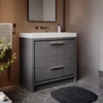 With a beautiful cement gray finish over a high-quality particleboard construction, this vanity compliments any style, allowing for the perfect balance between color and design. Its sink/countertop is made from a durable acrylic material that is less likely to break than traditional ceramic or porcelain. It is also easier to clean and requires little maintenance.
